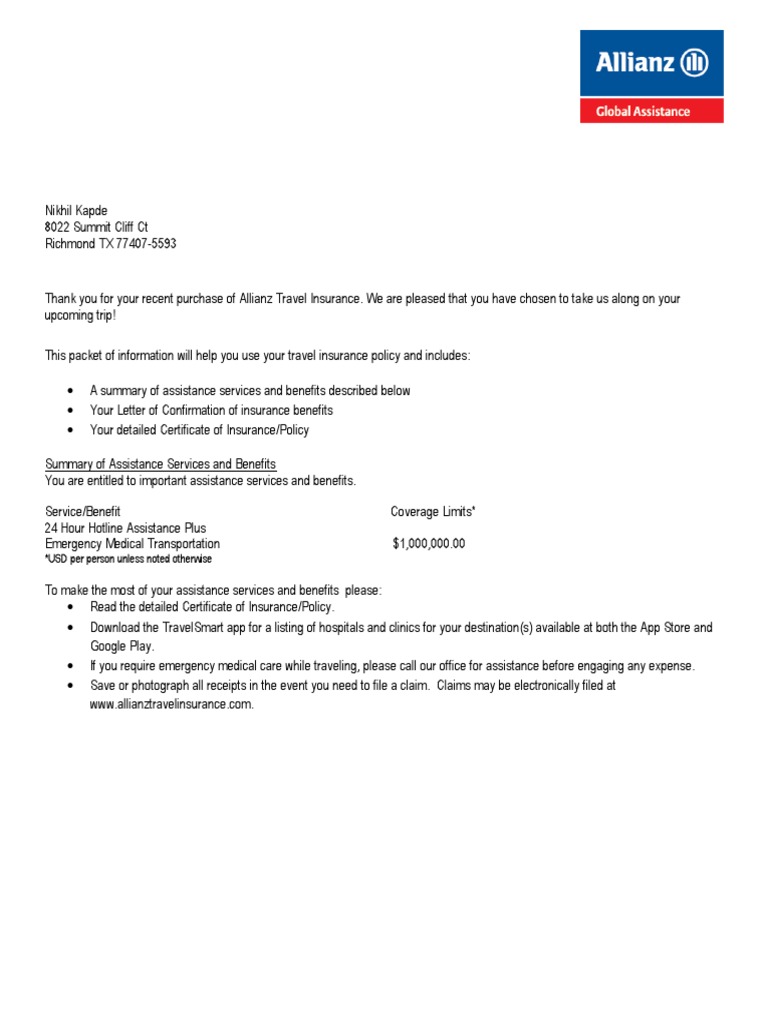 Certificate of coverage or letter from the health plan issuer showing the end date of coverage. The purpose of your travel to the schengen member state or states. This hdhp includes five key components: Sample doctor appointment confirmation letter. Print or view digital id card.